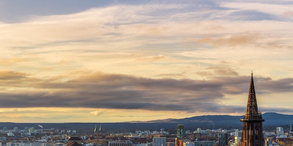 Buy the photo Skyline of the City of Freiburg panorama by adventure-photos on canvas, ArtFrame, poster and wallpaper, printed on demand in high quality.