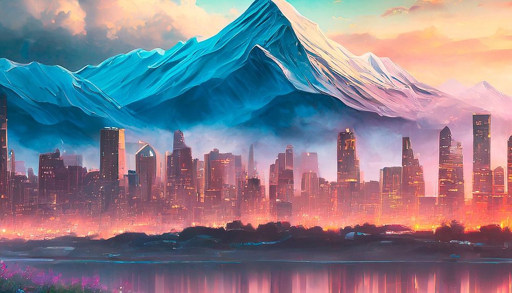 Buy this landscape artwork Skyline with mountain and sunset by Mustafa Kurnaz on canvas, ArtFrame, poster and wallpaper, printed on demand in high quality.