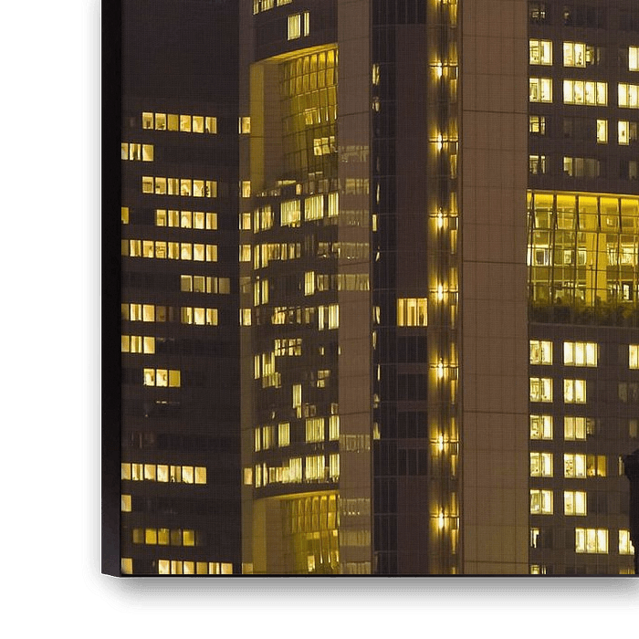 Buy the photo Skyscrapers in Frankfurt at night by Werner Dieterich on canvas, ArtFrame, poster and wallpaper, printed on demand in high quality.
