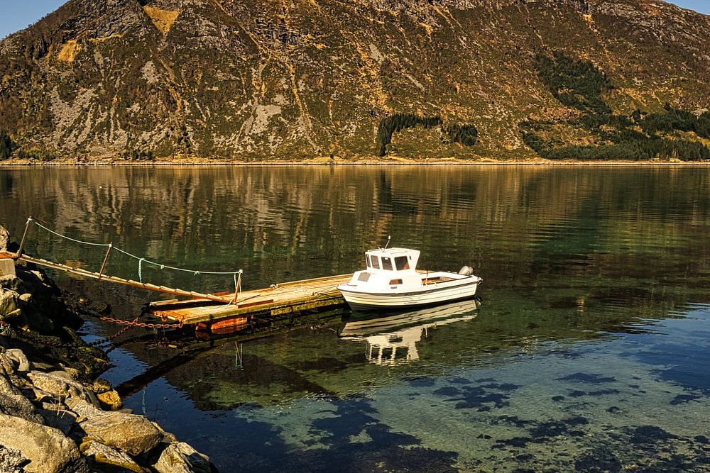 Western Cape in Norway. Small harbour on the fjord with mountains on the coast. Rugged nature in Scandinavia