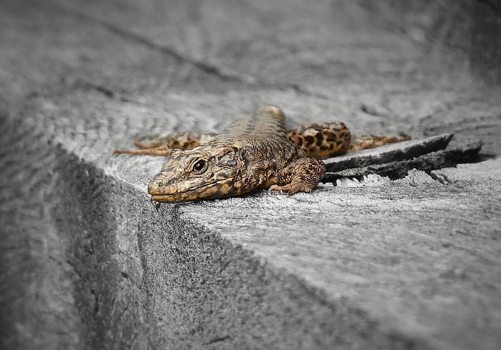 In post-processing, I emphasised the lizard's colour by converting the rest of the photo to black and white.