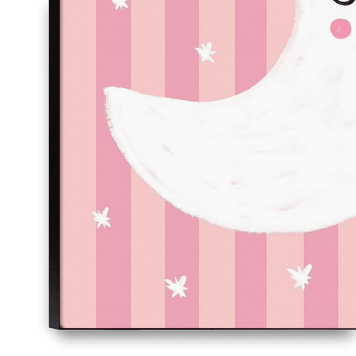 Buy this illustration Small moon on pink stripes by Bainai on canvas, ArtFrame, poster and wallpaper, printed on demand in high quality.