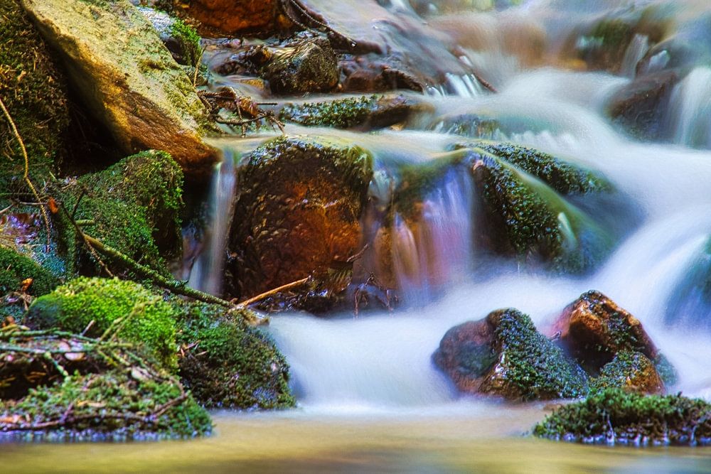About "Small waterfall in the forest with moss on stones"