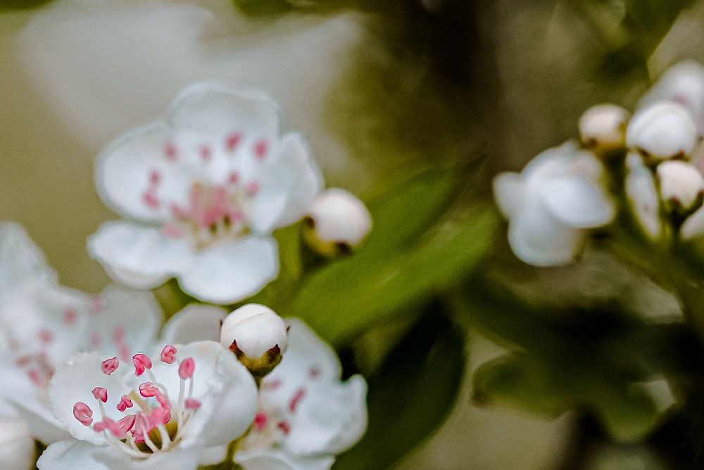 Spring shows itself well. Fresh young leaves with blossoms and their pink pistils, ready to be taken away by the bees.