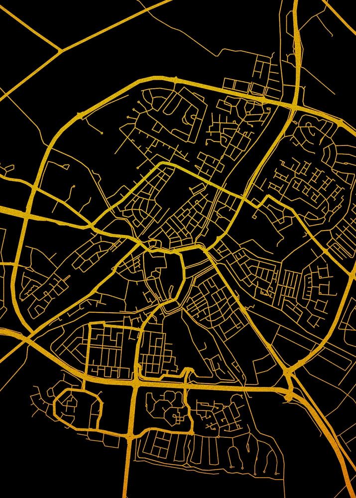 Buy this landscape artwork Sneek City Map Modern Black Gold by Kenda Maruyama on canvas, ArtFrame, poster and wallpaper, printed on demand in high quality.