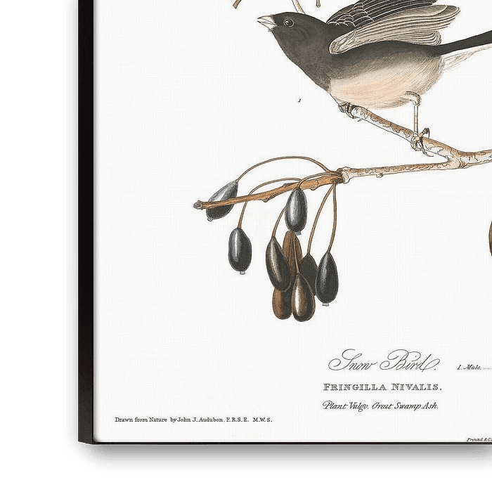 John James Audubon was born on April 26, 1785, in Les Cayes, Santo Domingo, France (now Haiti). From his father´s Pennsylvania estate, Audubon made the first American bird-banding experiments. He began collecting all things ornithological and making pencil and pastel sketches of birds. As his confidence as an artist grew, he ventured into watercolors, the medium he would most often employ. Audubon became a traveling artist, teaching occasional pupils, but always painting local birds and their natural habitats. His major work, a color-plate book entitled The Birds of America (1827–1839), is considered one of the finest ornithological works ever completed. Audubon died on January 27, 1851 in New York City. Note: This artwork can also be obtained without accompanying text in the illustration. Please contact us.