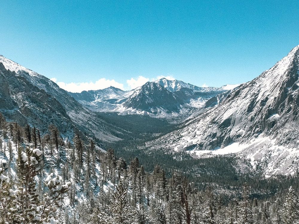 Buy this landscape artwork Snow covered mountains with tall trees by Marc van den Elzen on canvas, ArtFrame, poster and wallpaper, printed on demand in high quality.