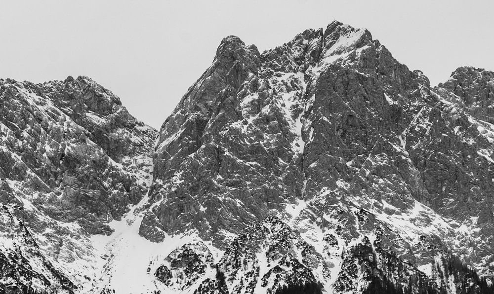 About "Snow covered the Zugspitze in the Alps Black and white photography"