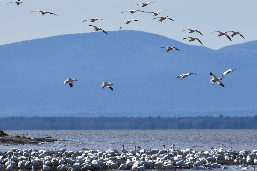 Buy the photo Snow geese on the river by Claude Laprise on canvas, ArtFrame, poster and wallpaper, printed on demand in high quality.