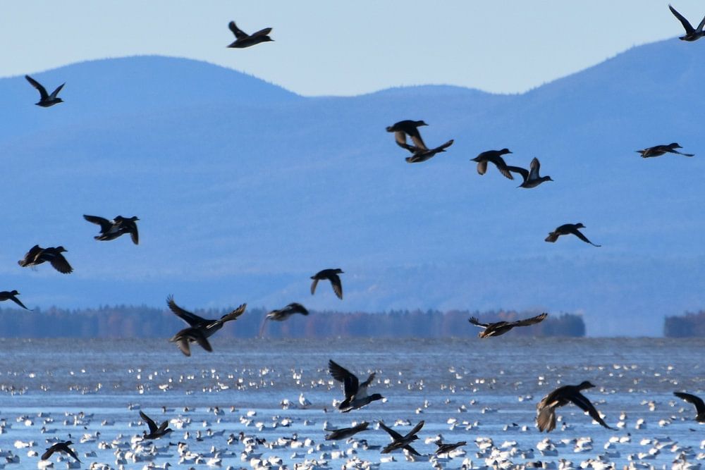 Buy the photo Snow geese on the river by Claude Laprise on canvas, ArtFrame, poster and wallpaper, printed on demand in high quality.