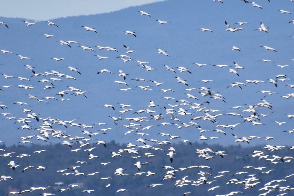 Buy the photo Snow geese on the river by Claude Laprise on canvas, ArtFrame, poster and wallpaper, printed on demand in high quality.