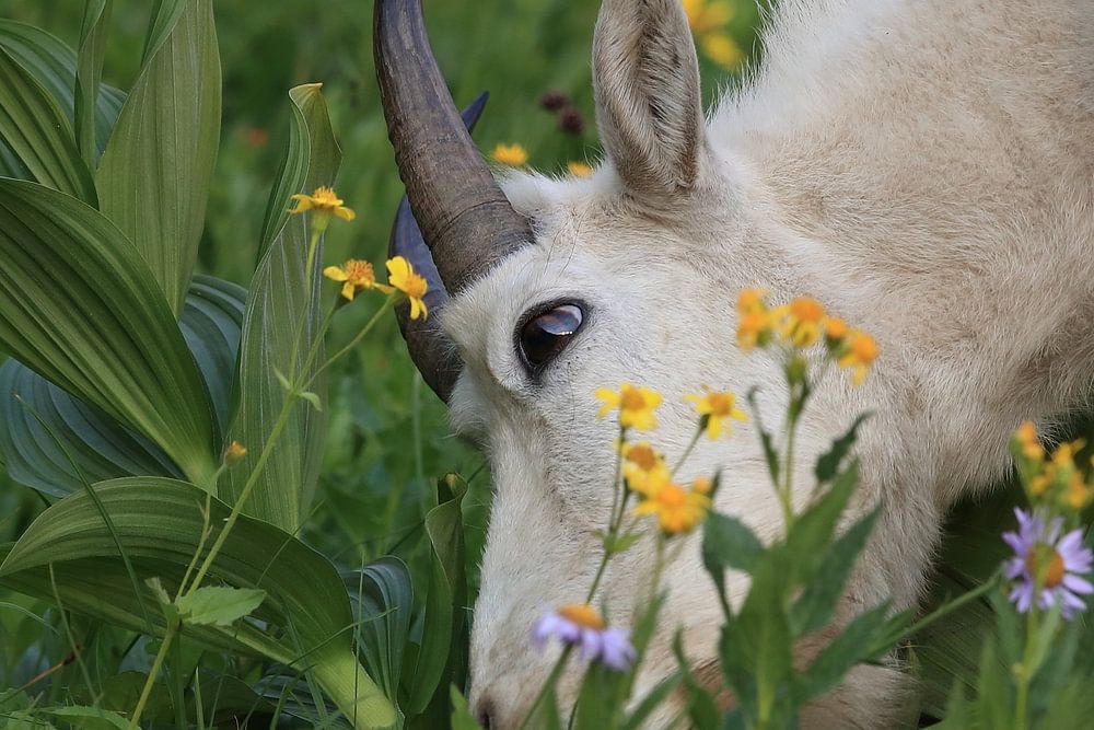 Snow goat (Oreamnos americanus), Glacier National Park, Montana, Rocky Mountains,USA by Frank Fichtmüller