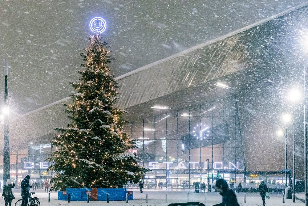Snow in Rotterdam at Central Station 2 by Contrast+ Fotografie