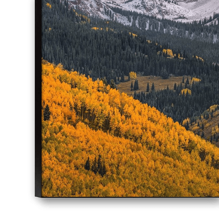 Large Photo of sunset sky over Capitol Peak surrounded by an autumn aspen forest. I captured this photo during the fall of 2023 on a trip with some friends to the Snowmass area.