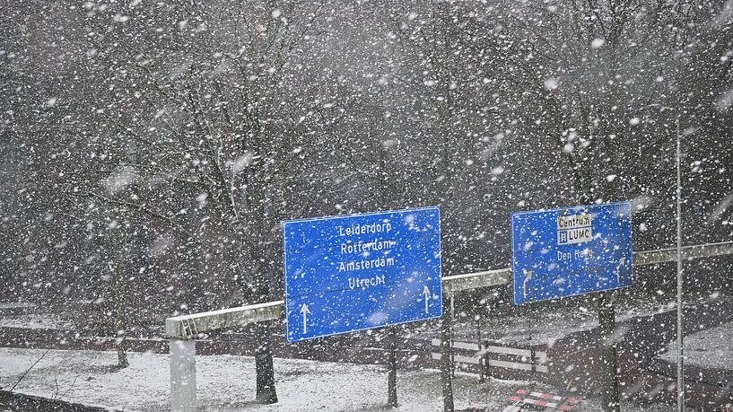 Buy this landscape artwork Snowstorm on the motorway by Bambi Lu on canvas, ArtFrame, poster and wallpaper, printed on demand in high quality.