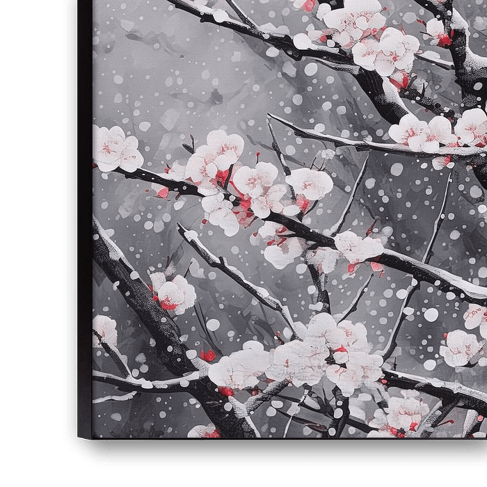 A colourful digital painting of a snowy Japanese sakura blossom. The work gives a dreamy and classic look to your interior!