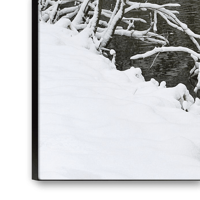 Snow on the shrubs and no ice in the canal, this is a photogenic fact. In black and white the colours do not distract from the shapes.