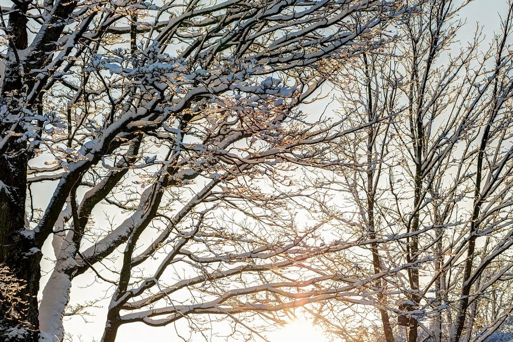 Snowy forest in the evening time. North Europe by Yevgen Belich