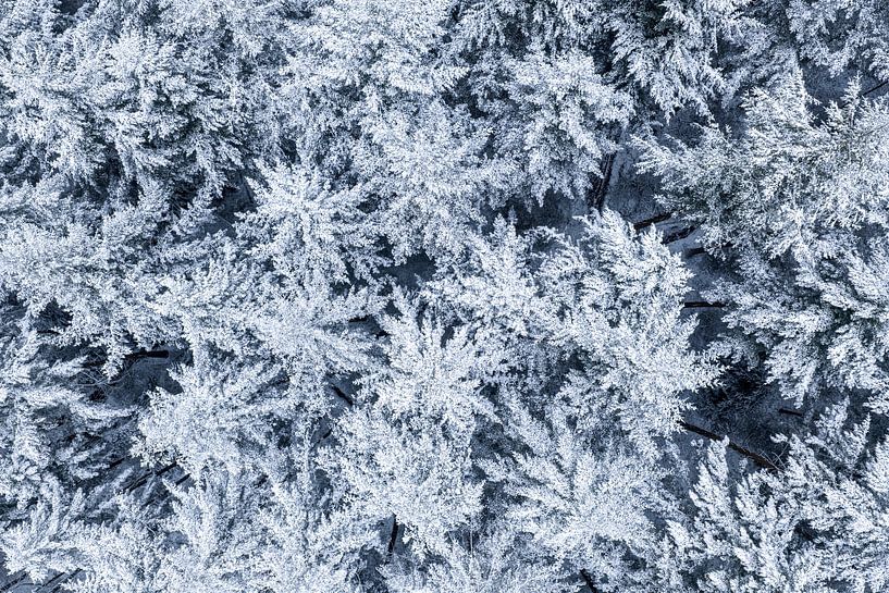 Snowy pine tree forest seen from above by Sjoerd van der Wal Photography