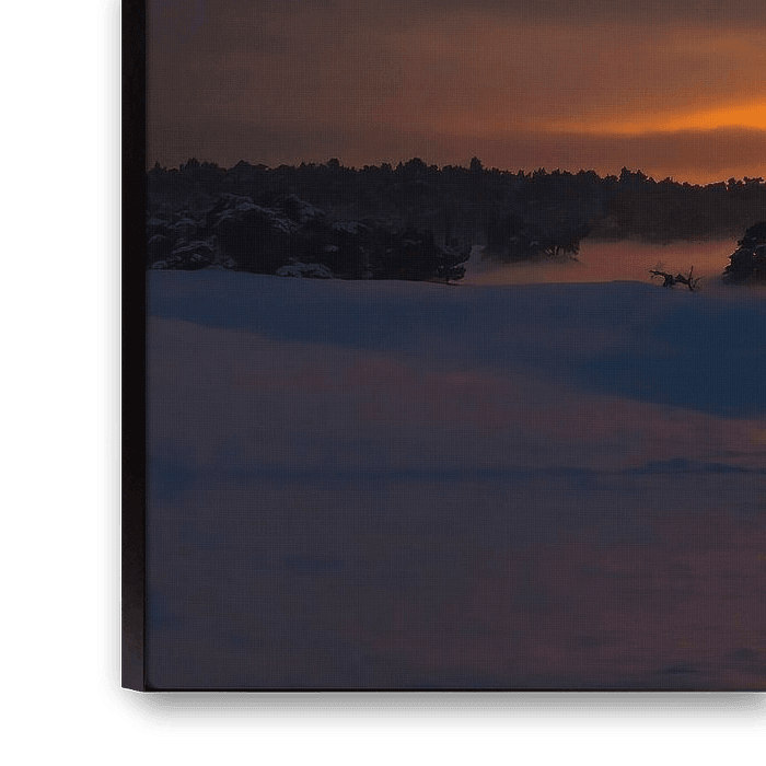 Snow at the Hulshorsterzand in the Veluwe nature reserve is a winter wonderland during sunset. The rolling hills are blanketed in a thick layer of snow, which glistens in the warm light of the setting sun. The sky is a brilliant mixture of oranges, casting a warm glow over the landscape. Trees and bushes are dusted with snow, creating a serene and peaceful atmosphere. The stillness and tranquility of the scene are only broken by the occasional flutter of a bird taking flight or the distant call of a wild animal.