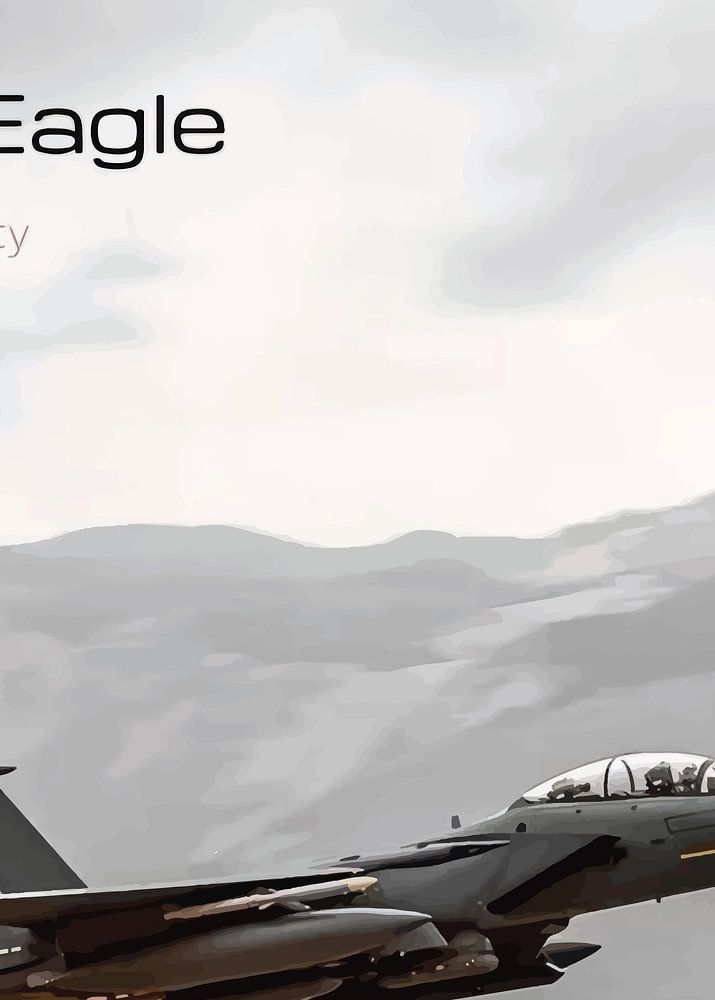 A majestic black-and-white photograph capturing the F-15 Eagle in mid-flight, demonstrating its dominance in the skies. The sleek design and powerful silhouette of this iconic fighter jet exude a sense of strength and agility.