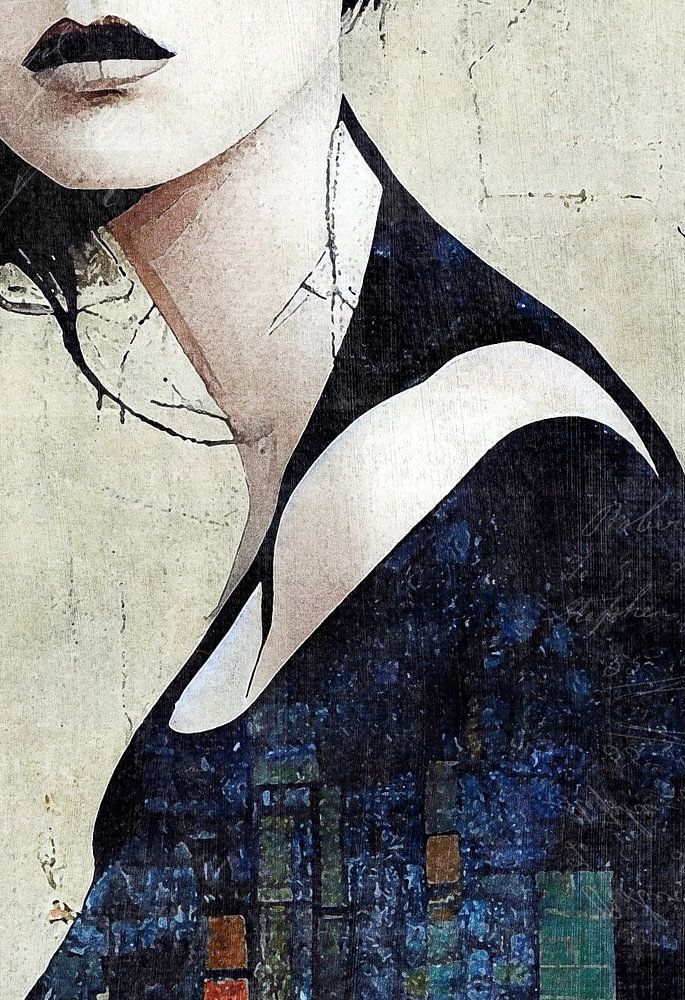 Portrait of Sofie. An illustration on coarse paper, mixed media collage.