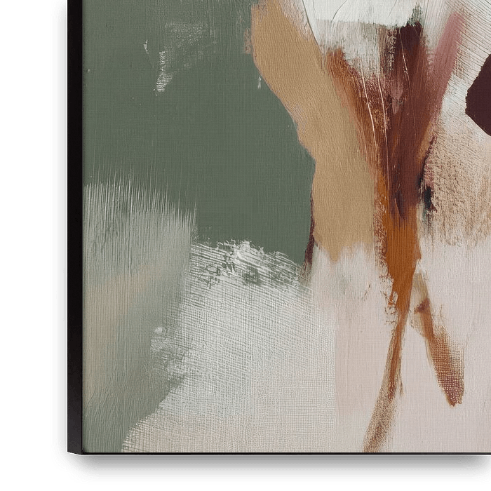 This expressive work depicts a female figure balancing between strength and vulnerability. Loose, painterly brushstrokes and a layered colour palette of soft pink tones, earthy greens and warm accents create a sense of movement and elegance. The abstract approach leaves room for personal interpretation and invites the viewer to slow…