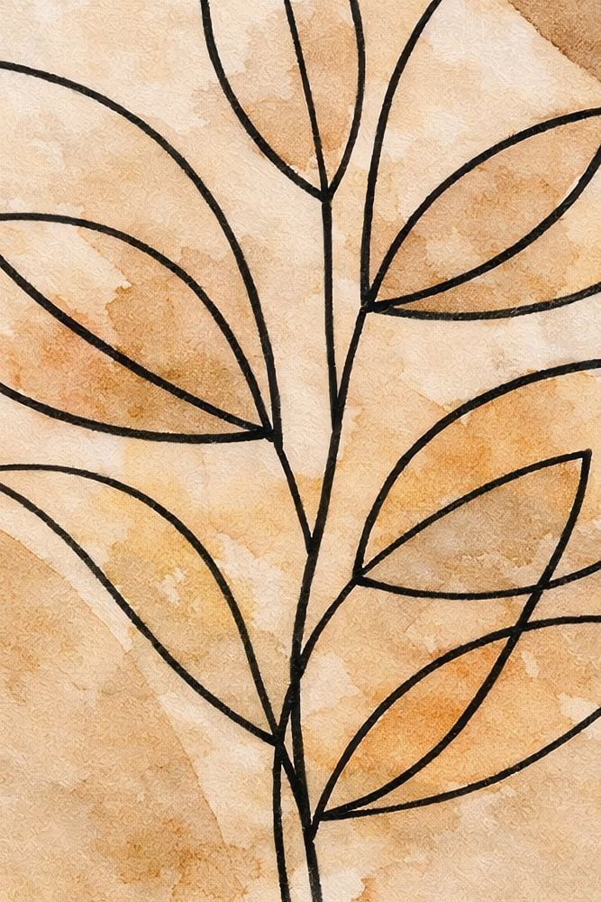 A soft botanical line art illustration with warm neutral tones, designed to bring balance and tranquility to your space. Ideal for minimalist interiors, bedrooms, or modern living rooms. This artwork complements Scandinavian decor and natural wood furniture effortlessly.