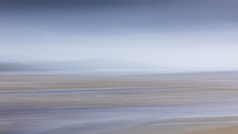 A tranquil seascape in which water and horizon gently merge. The long exposure time creates a picturesque haze that radiates tranquillity and space. The subtle transitions between blue, sand and grey give this image a minimalist and timeless look.