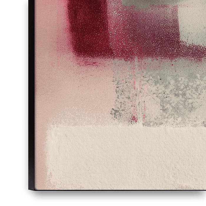 Soft Neon II is a fresh abstract artwork with large areas of colour in fuchsia, bright orange, burgundy, light grey and soft nude tones. The grainy texture and transparent layers create depth, while the clean rectangles keep it modern and graphic. The work exudes energy, but remains neutral enough for different interiors due to its soft…