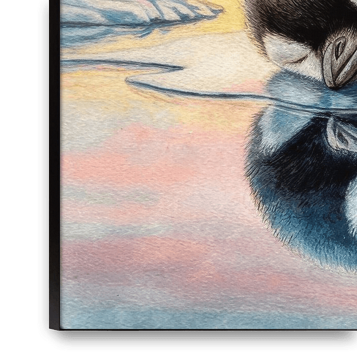 Buy this landscape artwork Soft penguin chick with mirror effect by Imperial Art House on canvas, ArtFrame, poster and wallpaper, printed on demand in high quality.