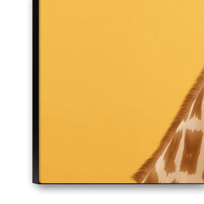 In "Sun Flight" the giraffe is characterised not only by her iconic long neck, but also by the warm, monochrome yellow that envelops her. Soft, natural lines and subtle shadows highlight her elegant form against a vibrant ochre yellow background. This piece exudes an energetic warmth and would look great in spaces aiming for a playful yet chic atmosphere, such as a stylish office or a modern living room.