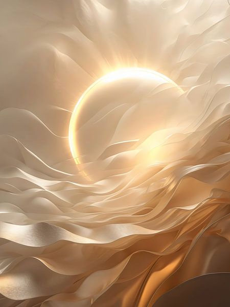Layered veils of gold, ivory and soft amber tones move like breath through the landscape. The sun does not seem to rise or set; it is embedded in the whole. As if the light had always…