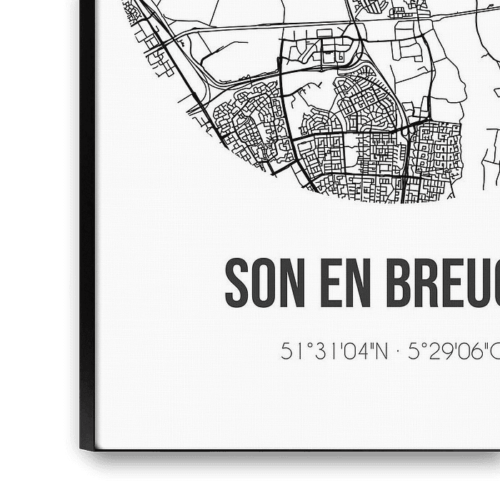 Black and white map, street map or street plan of Son en Breugel. Son en Breugel is located in the municipality of SonenBreugel, province of North Brabant. On the city map all public roads in Son en Breugel are included. Furthermore, the map is provided with the coordinates of the center of Son en Breugel.