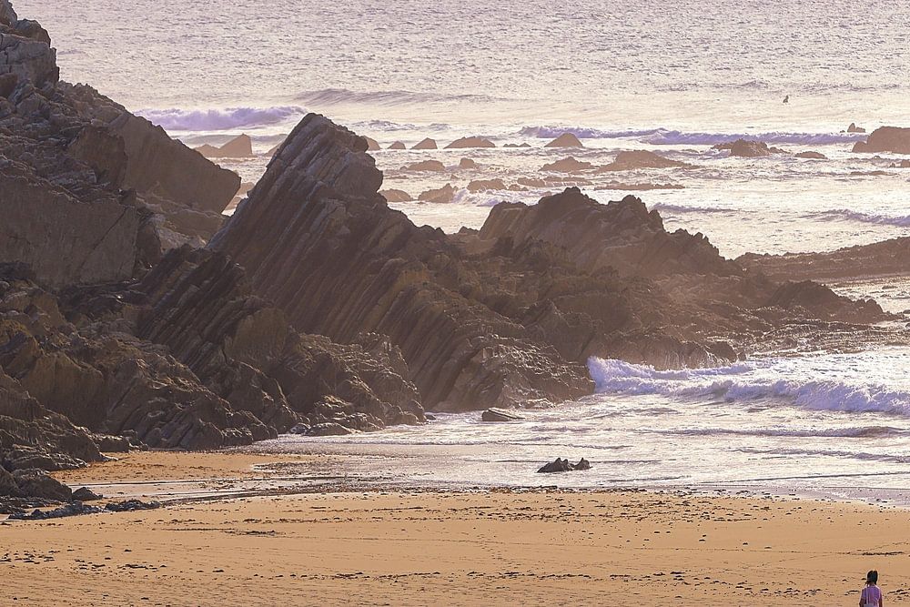 A woman walks on the beach at Sopelana on the Atlantic.