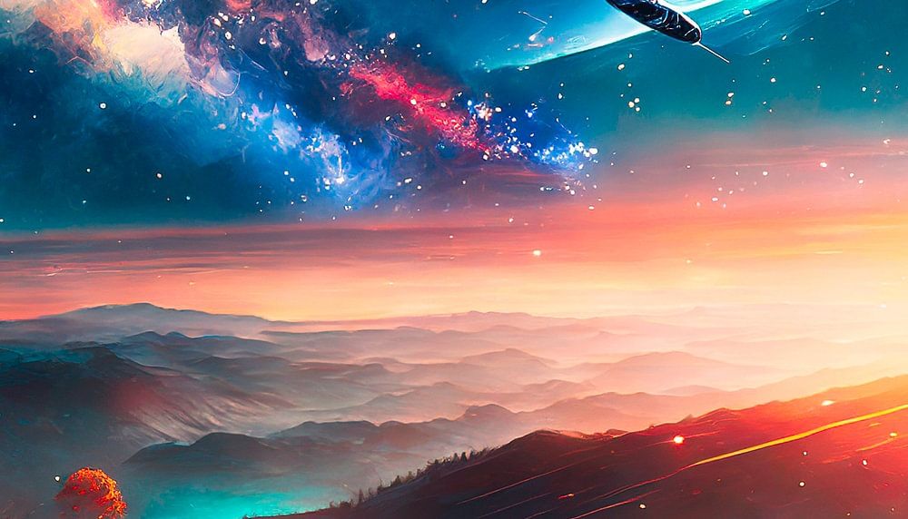 Buy this landscape artwork Space with new planets by Mustafa Kurnaz on canvas, ArtFrame, poster and wallpaper, printed on demand in high quality.