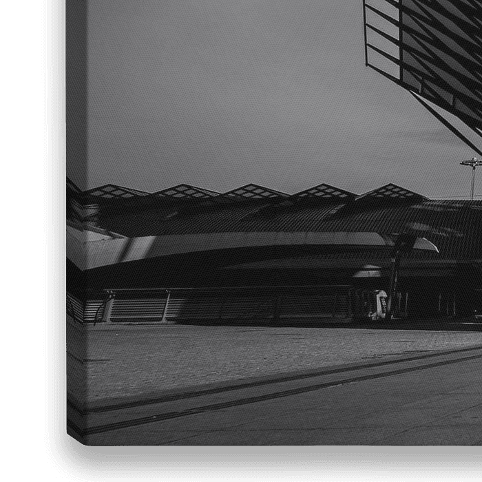 The TGV station of Lyon-Saint-Exupéry airport. The distinctive fan-shaped canopy of the train station was designed by the Spanish architect Santiago Calatrava.
