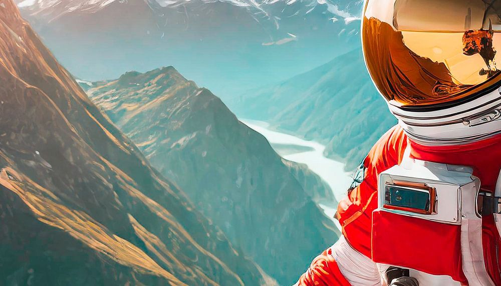 Buy this landscape artwork Spacesuit in red Astronaut by Mustafa Kurnaz on canvas, ArtFrame, poster and wallpaper, printed on demand in high quality.