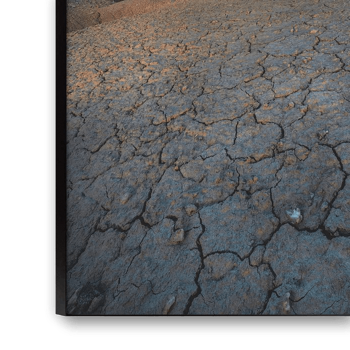 The scenery is pervaded by a gentle silence, interrupted only by the gentle rustle of the wind as it brushes across the dry earth. The contours of the table mountains and gorges gradually emerge, while the warm morning light bathes the landscape in a soft, pink-coloured glow.