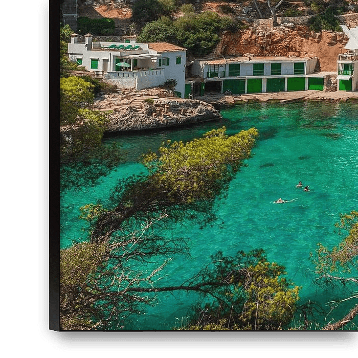 Buy the photo Spain Mediterranean Sea, beautiful beach bay of Cala Santanyi, Majorca Balearic islands by Alex Winter on canvas, ArtFrame, poster and wallpaper, printed on demand in high quality.