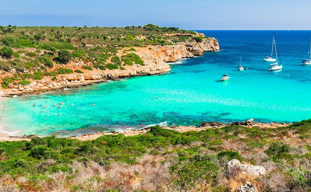 Spain Mediterranean Sea, beautiful beach bay of Cala Varques on Mallorca island, Mallorca, Balearic Islands, Balearic Sea, Mediterranean Sea, Spain