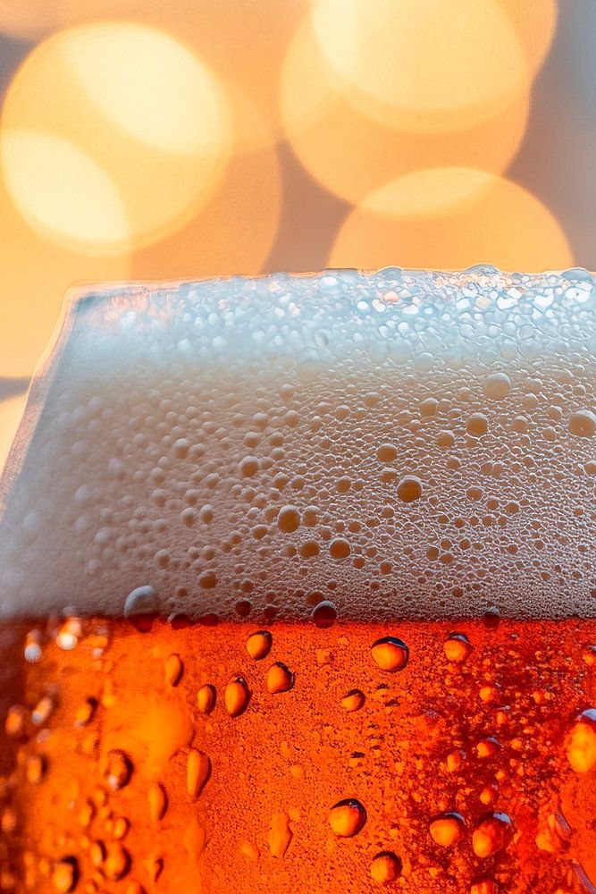 Wrapped in a soft, warm light, the drops of water on the glass sparkle like jewels and create an inviting atmosphere. The frothy rim promises refreshing enjoyment, perfect for convivial evenings. This picture adds a charming, sociable touch to the kitchen or living room and invites you to linger.