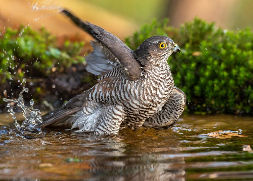 Buy this bird art Sparrowhawk takes a bath by Harry Punter on canvas, ArtFrame, poster and wallpaper, printed on demand in high quality.
