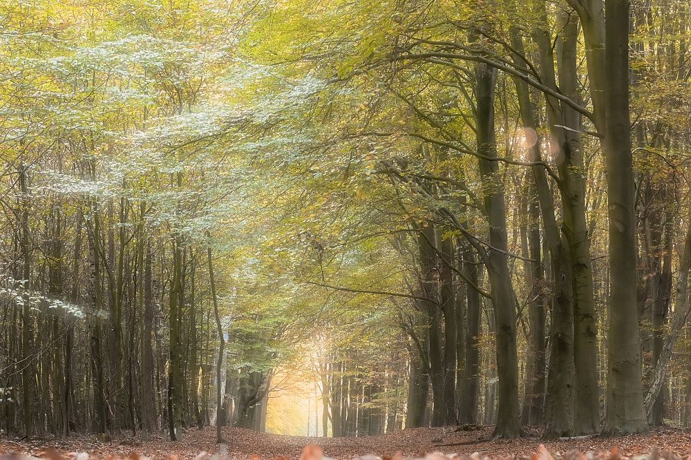 Landscape in the Speulderbos in Garderen, Gelderland. Multiple exposure was used here, where first the focus is on the front leaf, and in the second photo the focus is on the background.