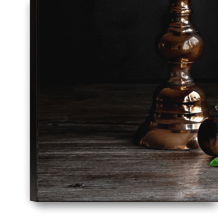 The picture was taken with natural light inspired by the old masters. The photo has a dramatic effect. You can see the glint in the texture of the plum.