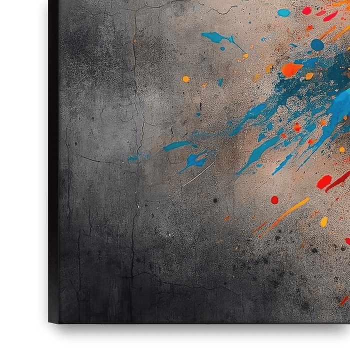 The painting presents a bison head immortalised in an explosion of colour. The contrast between the realistic animal's face and the abstract, colourful background represents a bold connection between nature and art. The colours seem to bubble out of the bison, emphasising its wild and vibrant energy. Each brushstroke expresses a…