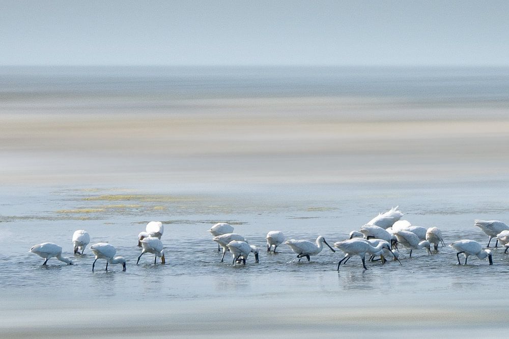Spoonbills on the beach at Kwade Hoek (Goeree).