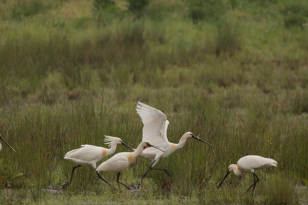 A beautiful bird on the waterfront. Foraging with its cutlery, it skims the shallow water. As seen in this picture, the prey it has caught, a frog, is not obvious that it can be devoured. He/she will have to defend the frog while running and flying, there are many hijackers on the coast.