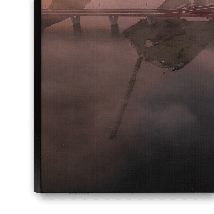 Experience the serene beauty of Zwolle as you have never seen it before. These photos, captured during a misty morning in October, show the iconic IJssel bridge and the silhouette of the city magically emerging from the haze. The warm hues of the sunrise blend beautifully with the soft grey of the mist, creating a dreamy and soothing atmosphere. These images capture not only a beautiful view but also a sense of calm and mystery, perfect for adding a touch of calm and elegance to a room.