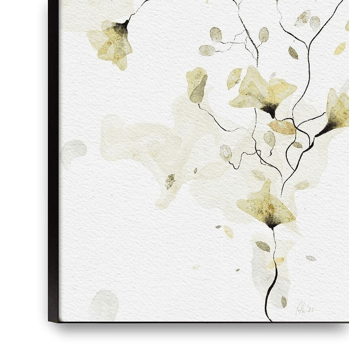 Digital watercolour with line of an abstracted plant. The flowers reach for the sky as if they want to make the best possible contribution to the lovely spring scents. I therefore chose the title 'Spring Green'.